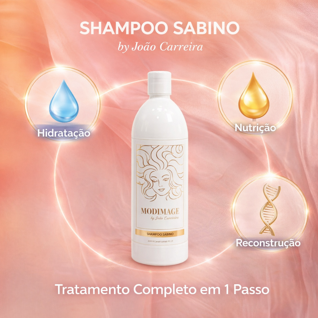 Experimenta o Shampoo Sabino e Sente a Diferença. O primeiro passo para um cabelo divino, com a assinatura de excelência de João Carreira.
